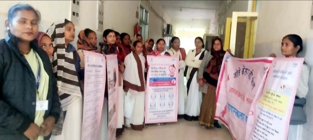 जागरूकता अभियान चलातीं आशा व संगिनी।