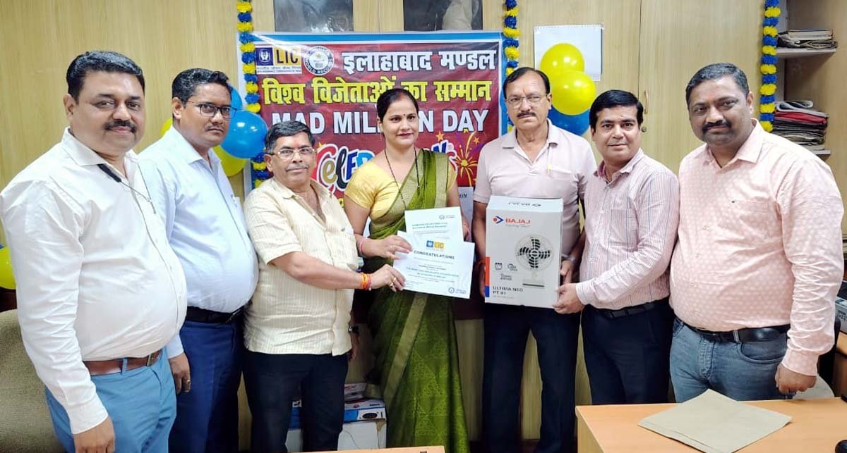 फतेहपुर(CNF)। एलआईसी फतेहपुर शाखा में शुक्रवार को आयोजित सम्मान समारोह में गिनीज बुक ऑफ वल्र्ड रिकॉर्ड सम्मान समारोह का आयोजन किया गया। जिसमें दो अभिकर्ताओं को सम्मानित किया गया। प्रतिभा देवी और वीना तिवारी को वरिष्ठ शाखा प्रबंधक सुधांशु चैरसिया, शाखा प्रबंधक मनोज गुप्ता, सहायक शाखा प्रबंधक धर्मेंद्र राज सिंह और विनय कुमार पांडे ने सम्मान पत्र और प्रतीक चिन्ह देकर सम्मानित किया।