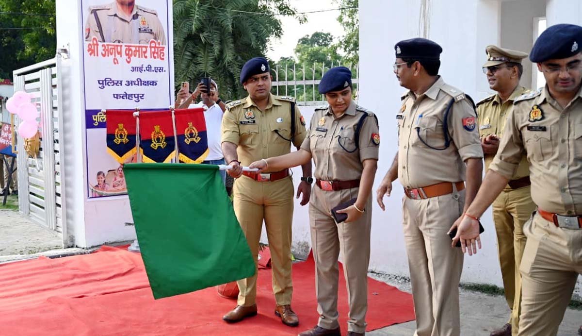 रैली को झण्डी दिखाकर रवाना करते एसपी व अन्य।