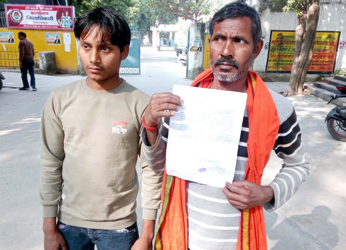 फतेहपुर(CNF)। असोथर थाना क्षेत्र के ग्राम व पोस्ट रिठवां निवासी राजू पुत्र जगदेव ने पुलिस अधीक्षक अनूप कुमार सिंह को एक शिकायती पत्र सौंपकर बताया कि वह अनपढ़ व्यक्ति है। केवल अंगूठा लगाना जानता है। वह गाटा संख्या 349 रकबा 0.2500 हे0 का स्वामी, काबिज व दाखिल है। गांव के ही राहुल ने उसे एक ट्रैक्टर लोन पर दिलवा दिया। 24 अक्टूबर को राहुल व सौरभ निवासी संवत व सुनीता पत्नी अशोक निवासी ग्राम व पोस्ट रिठवां थाना असोथर उसे यह कहकर लाए कि ट्रैक्टर का लोन लेने के लिए गारंटर बनेंगे। पुरानी तहसील पहुंचकर सादे कागज पर अंगूठा निशान बनवा लिया और आधार कार्ड व फोटो ले ली। कूटरचित दस्तावेज तैयार कराकर उसकी जमीन का बैनामा करा लिया। जब उसे आशंका हुई तो उसने अपने ट्रैक्टर के कागज मांगे तो यह लोग आनाकानी करने लगे। बैनामे में दर्शायी गई चेक भी उसे नहीं दी गई। न ही उसे कोई भुगतान किया गया। जब उसने उलाहना दिया तो उसके साथ गाली-गलौज की। इतना ही नहीं जमीन पर अवैध कब्जे का प्रयास किया। जिस पर उसने घटना की सूचना कोतवाली में दी लेकिन कोई कार्रवाई नहीं हुई। पीड़ित ने एसपी से मांग किया कि कूटरचित बैनामा कराने वालों पर मुकदमा दर्ज किया जाए।