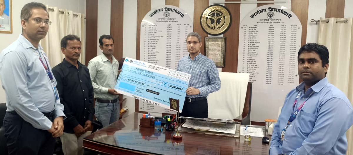 एसबीआई ने यह धनराशि अमित कुमार के लिए गए स्टेट गवर्मेंट सैलरी पैकेज अकाउंट के तहत दी है। इस अवसर पर मृतक लेखपाल के भाई कृष्ण कुमार, सुरेंद्र कुमार, क्षेत्रीय प्रबंधक एसबीआई हिमांशु प्रकाश, मुख्य प्रबंधक रूपेश गंगवार, ऑटो लोन एरिया मैनेजर उमेश पांडेय, ब्रांच मैनेजर कोड़ा जहानाबाद अजीत राय उपस्थित रहे।