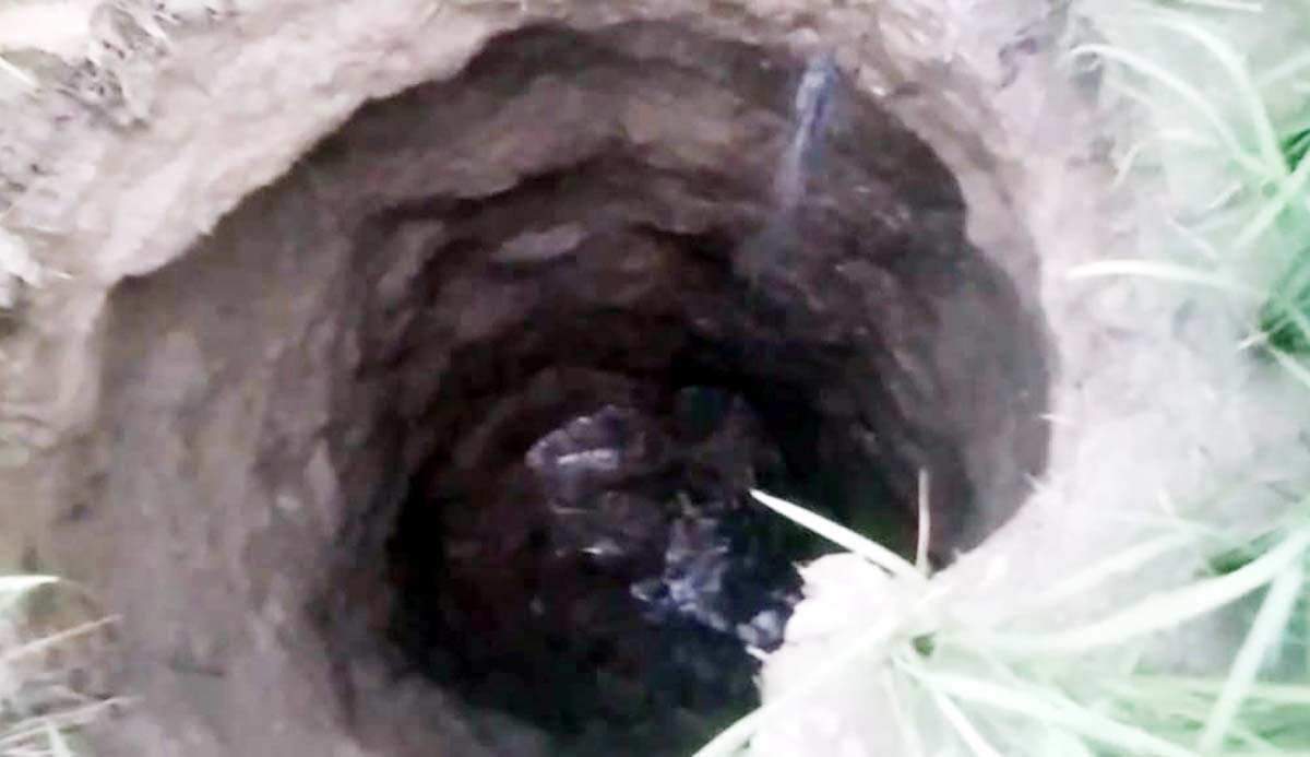 खेत में गड्ढे का दृश्य।