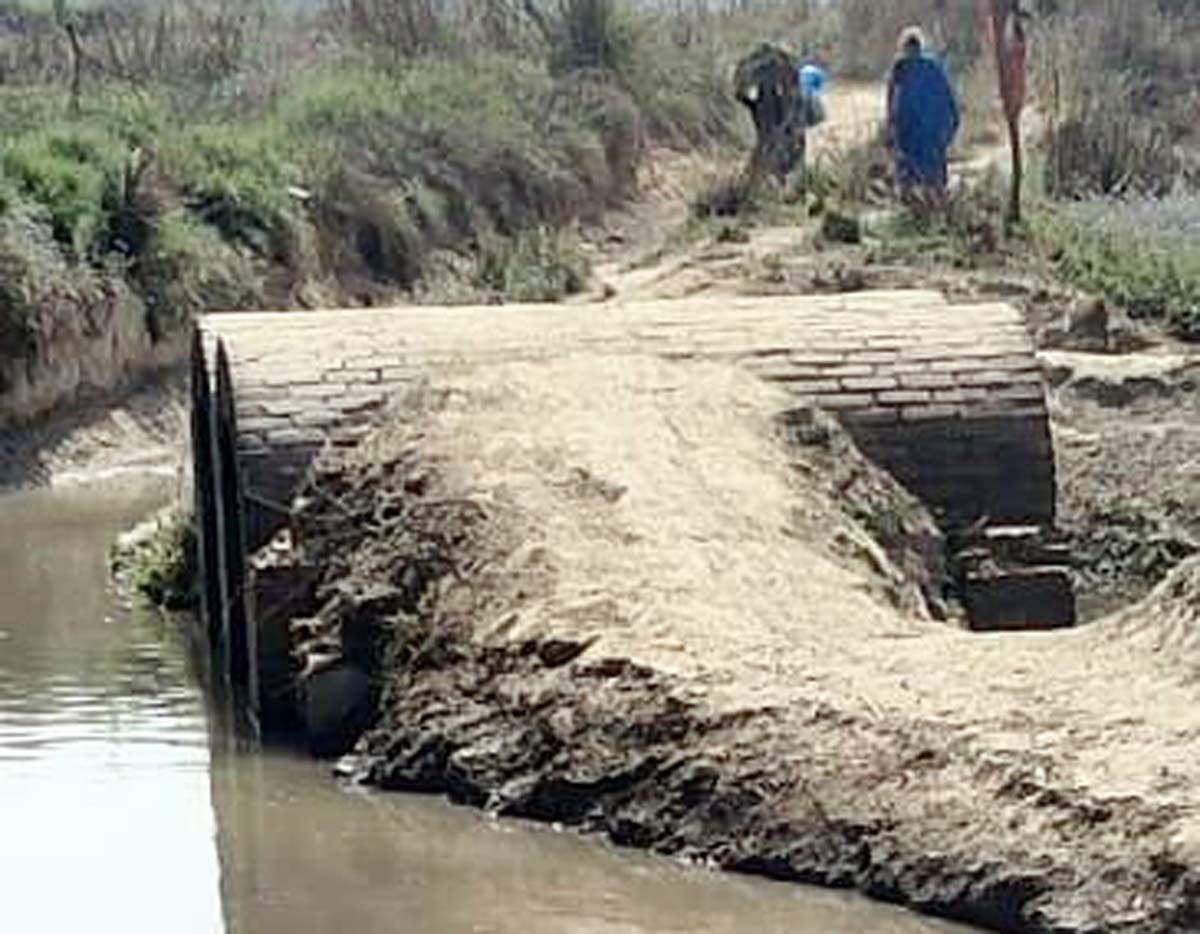 नरौली गांव की टूटी पुलिया का दृश्य।