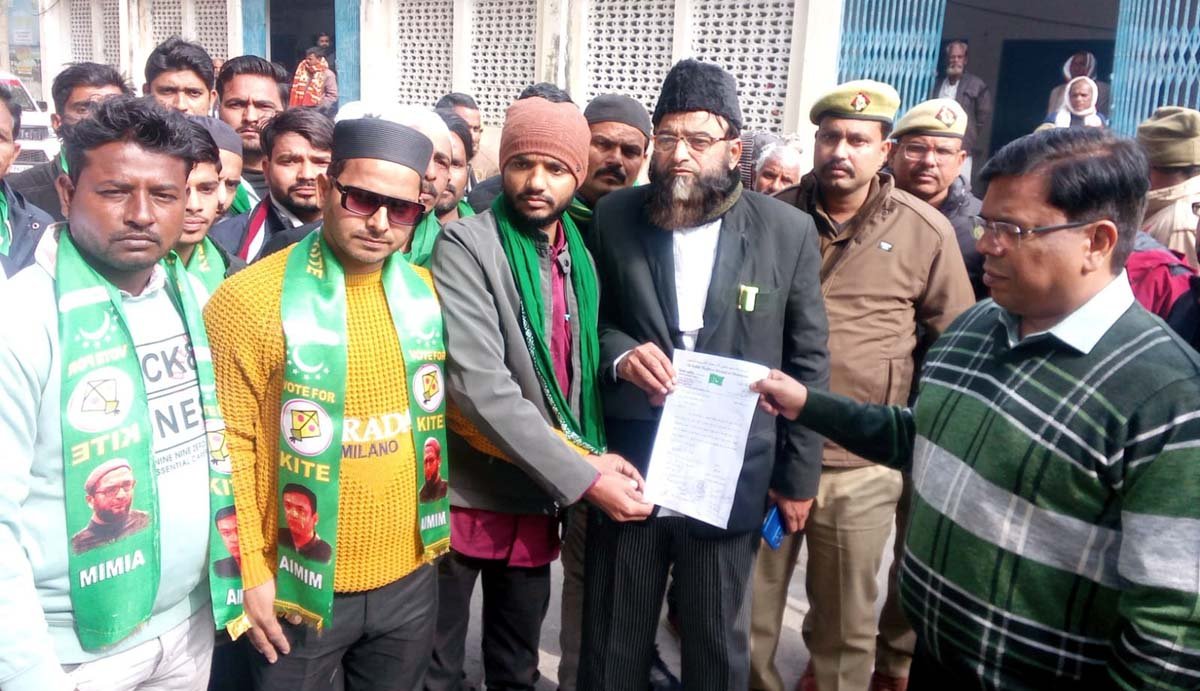 एडीएम को ज्ञापन सौंपते एआईएमआईएम के पदाधिकारी।