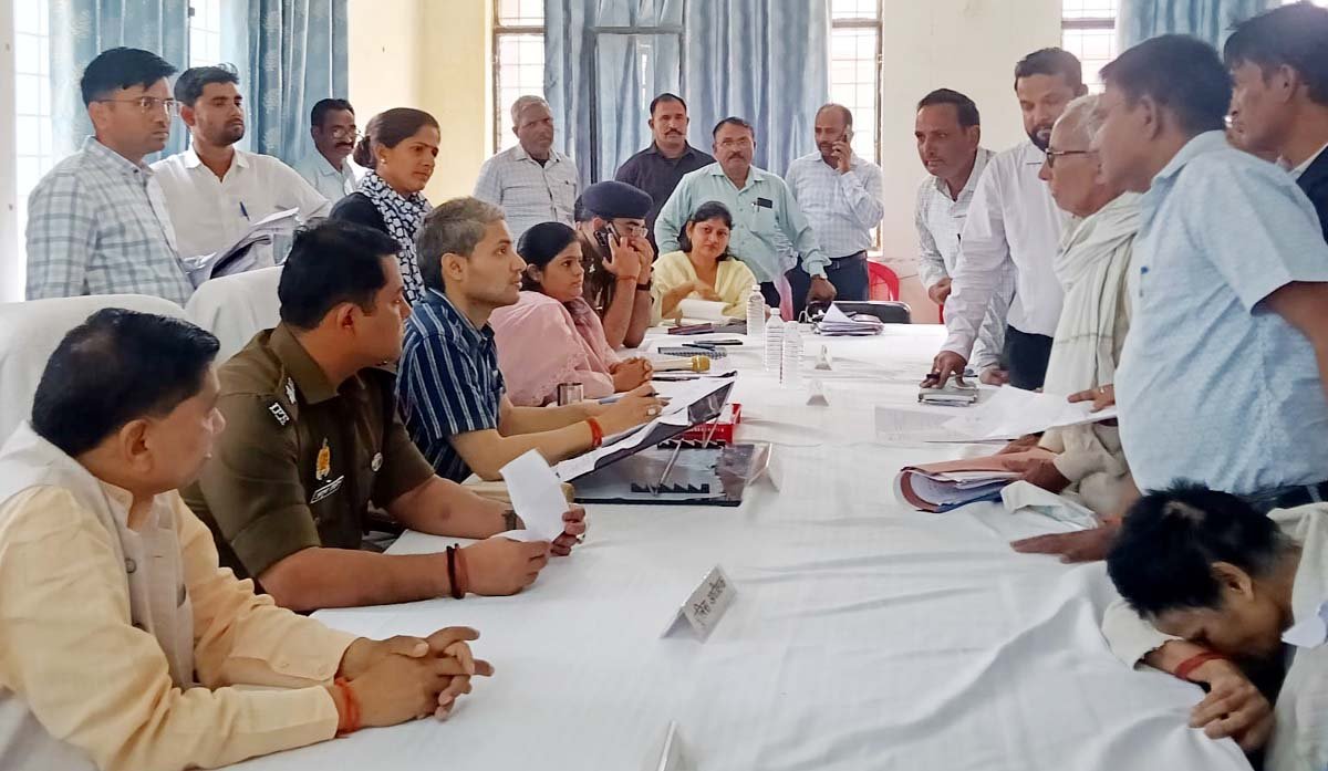 बिंदकी के संपूर्ण समाधान दिवस में पीड़ितों की समस्याएं सुनते डीएम-एसपी।