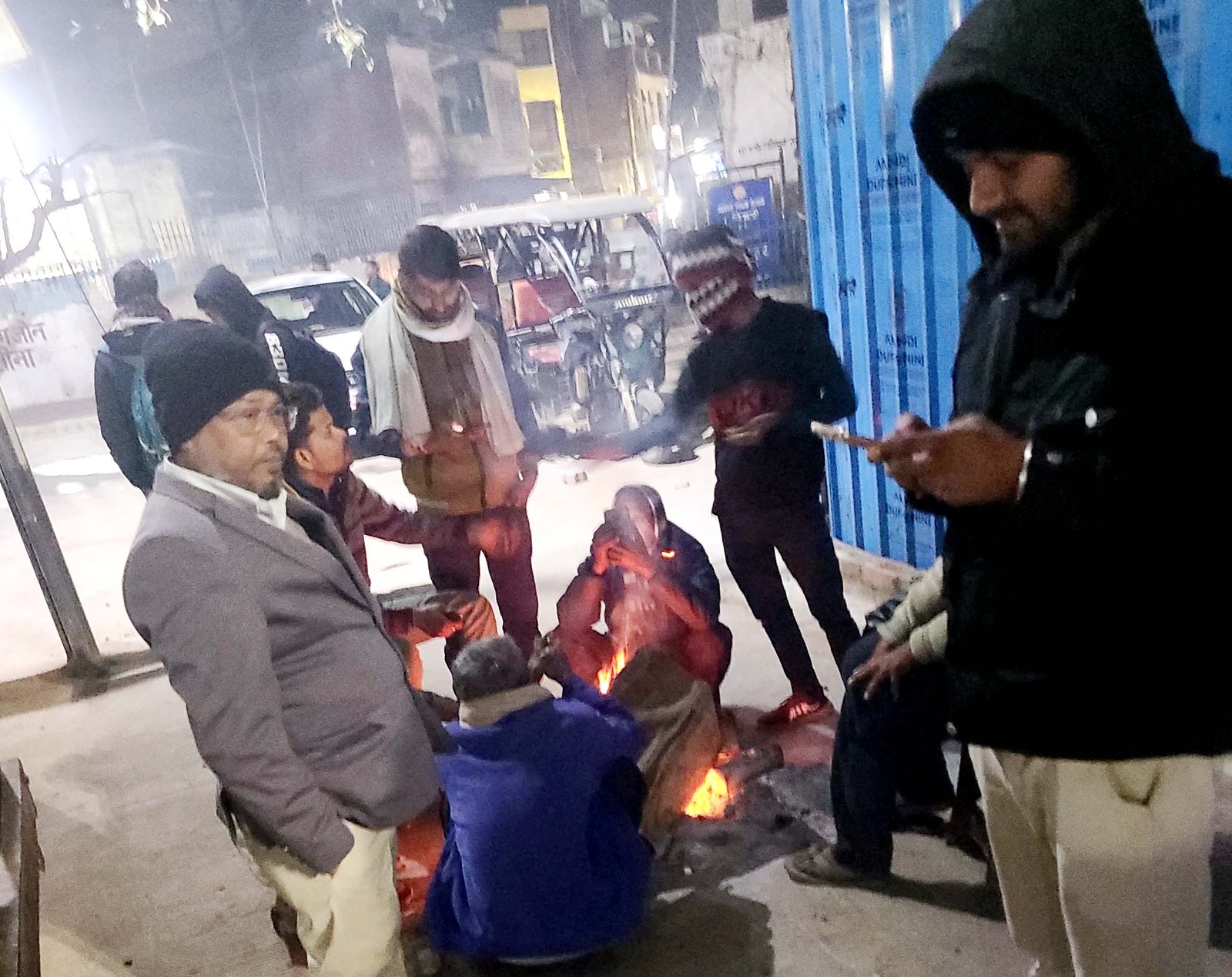 अलाव जलवाते पालिका कर्मी मोहम्मद हबीब।