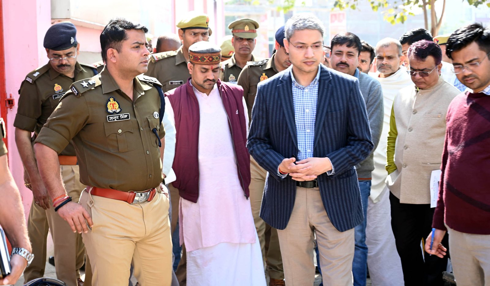 तांबेश्वर मंदिर की व्यवस्थाओं का जायजा लेते डीएम व एसपी।
