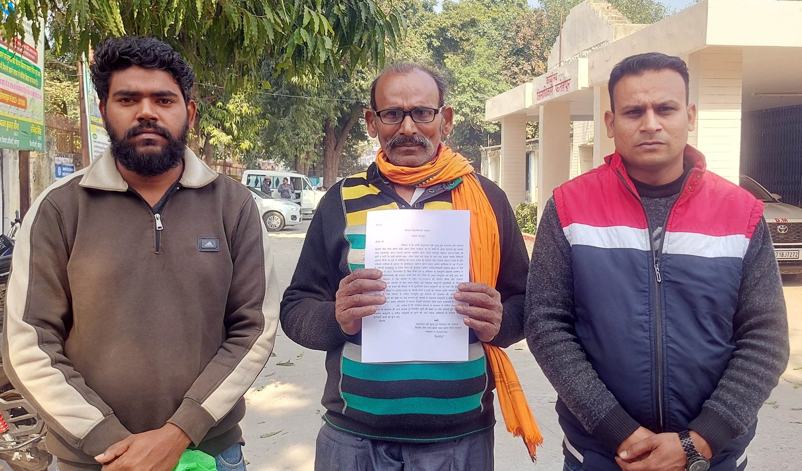 डीएम को शिकायती पत्र देने जाता पीड़ित परिवार।