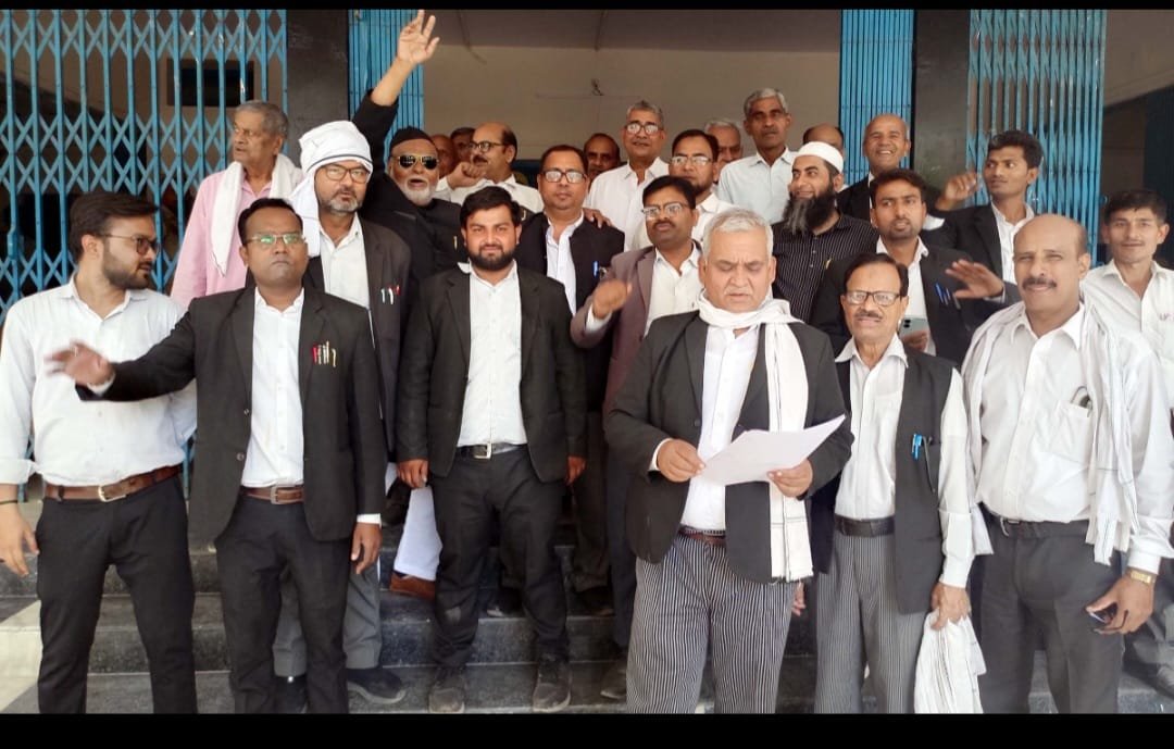 कलेक्ट्रेट पर प्रदर्शन करते बार एसोसिएशन के पदाधिकारी व अधिवक्ता।