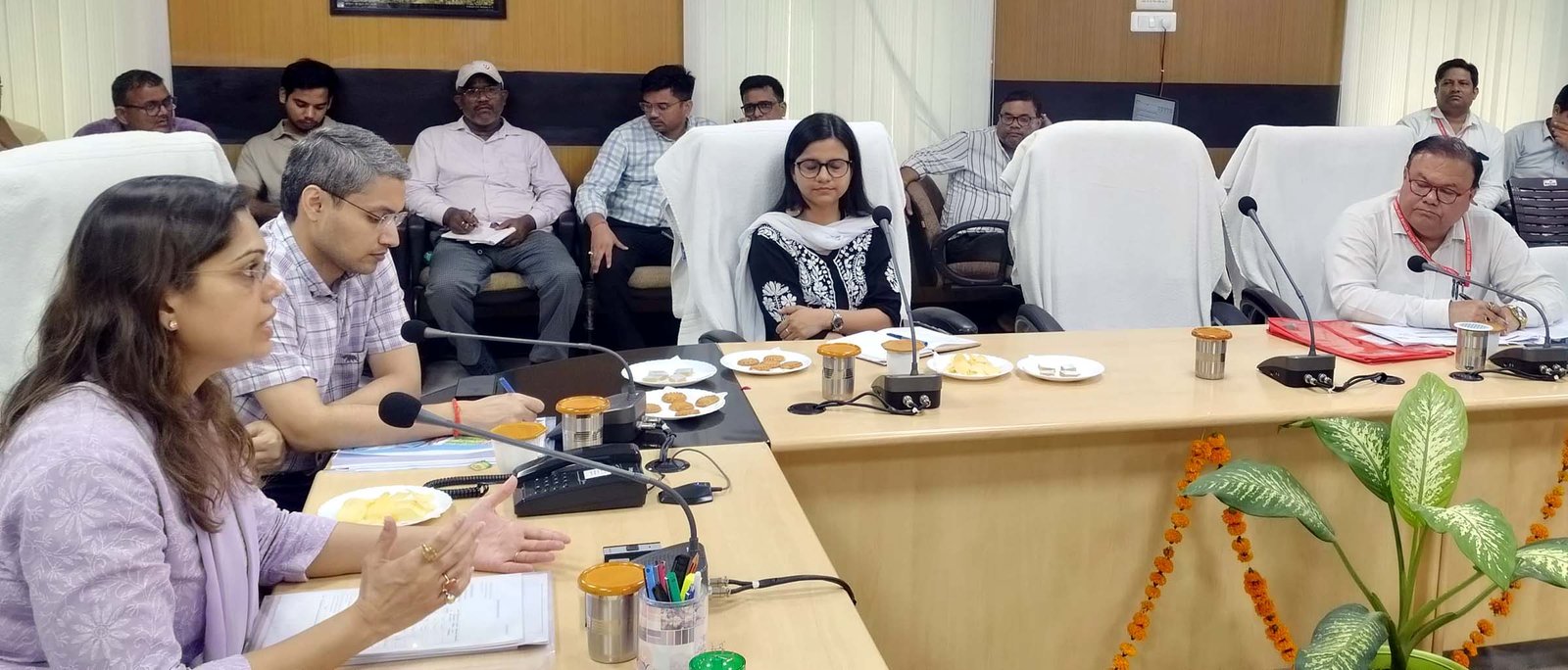 समीक्षा बैठक में भाग लेती नोडल अधिकारी अदिति सिंह व डीएम रवीन्द्र सिंह।